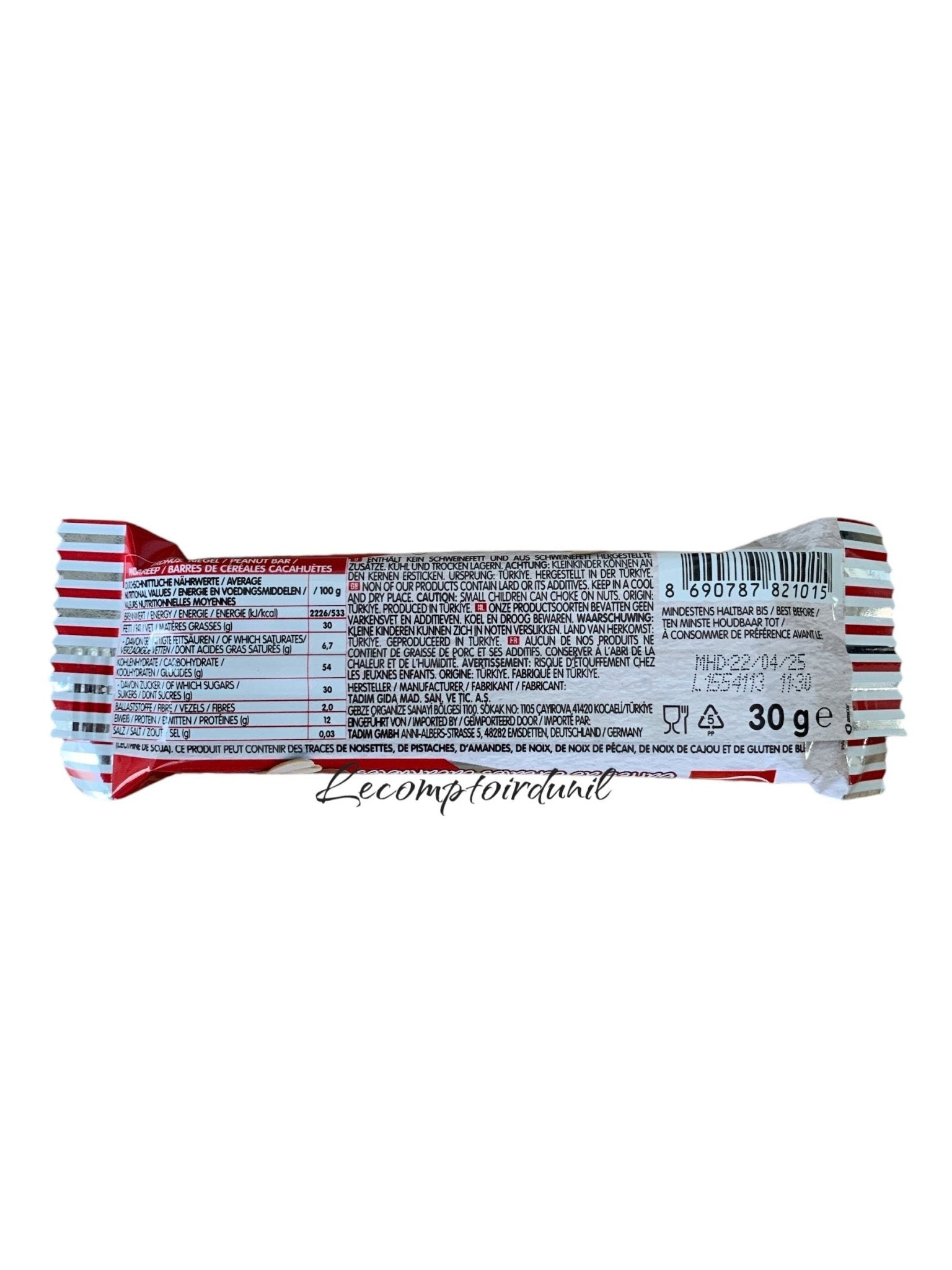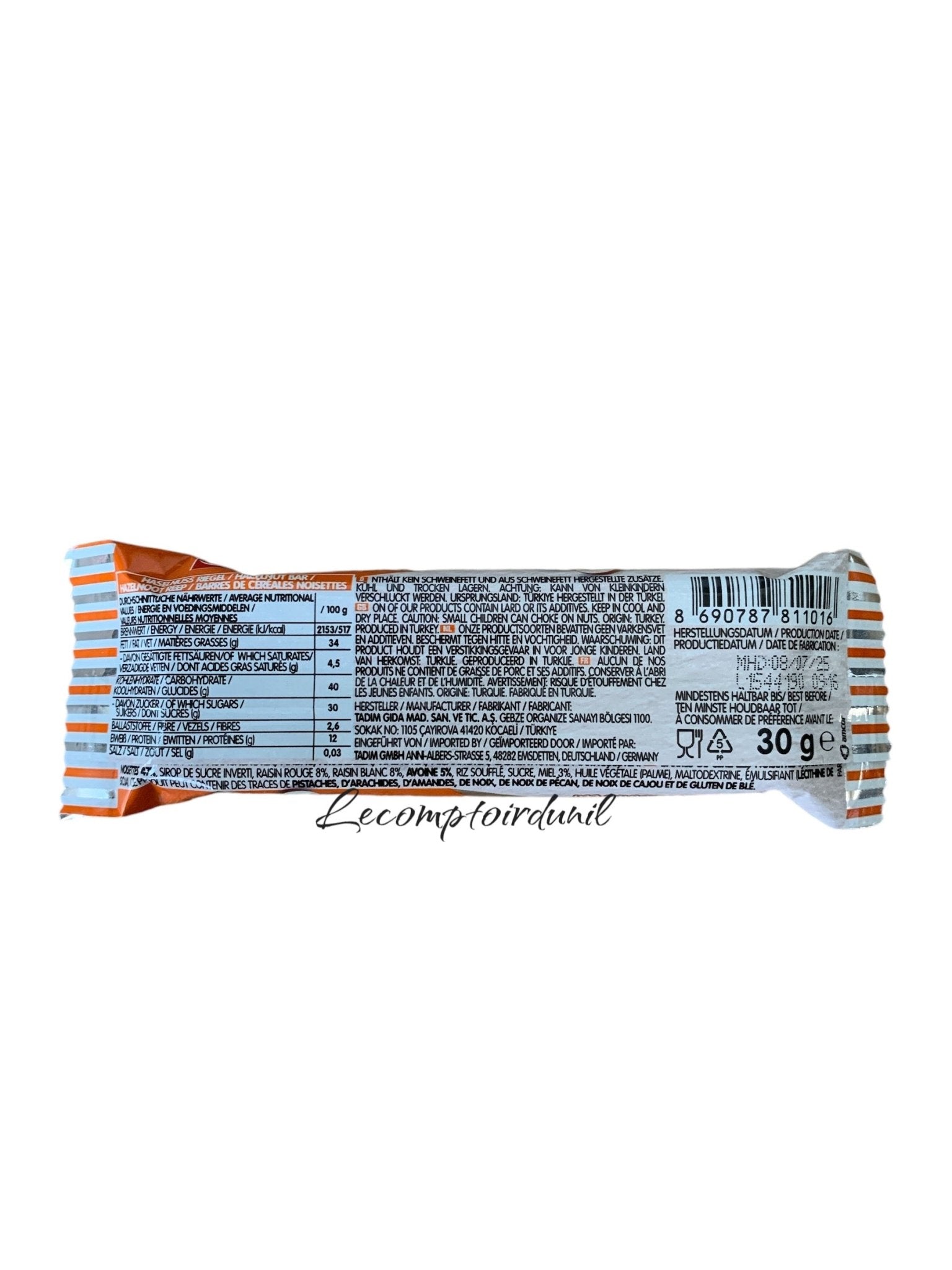 La barre énergétique Tadımca 35g est l’encas idéal pour une pause saine et savoureuse. Préparée avec des fruits secs et des noix de qualité, elle se décline en quatre saveurs naturelles : Noisette, Pistache, Datte ou Cacahuète. Riche en fibres et sans conservateurs, cette barre turque allie énergie, plaisir et authenticité. Parfaite pour le sport, le travail ou les petits creux du quotidien.